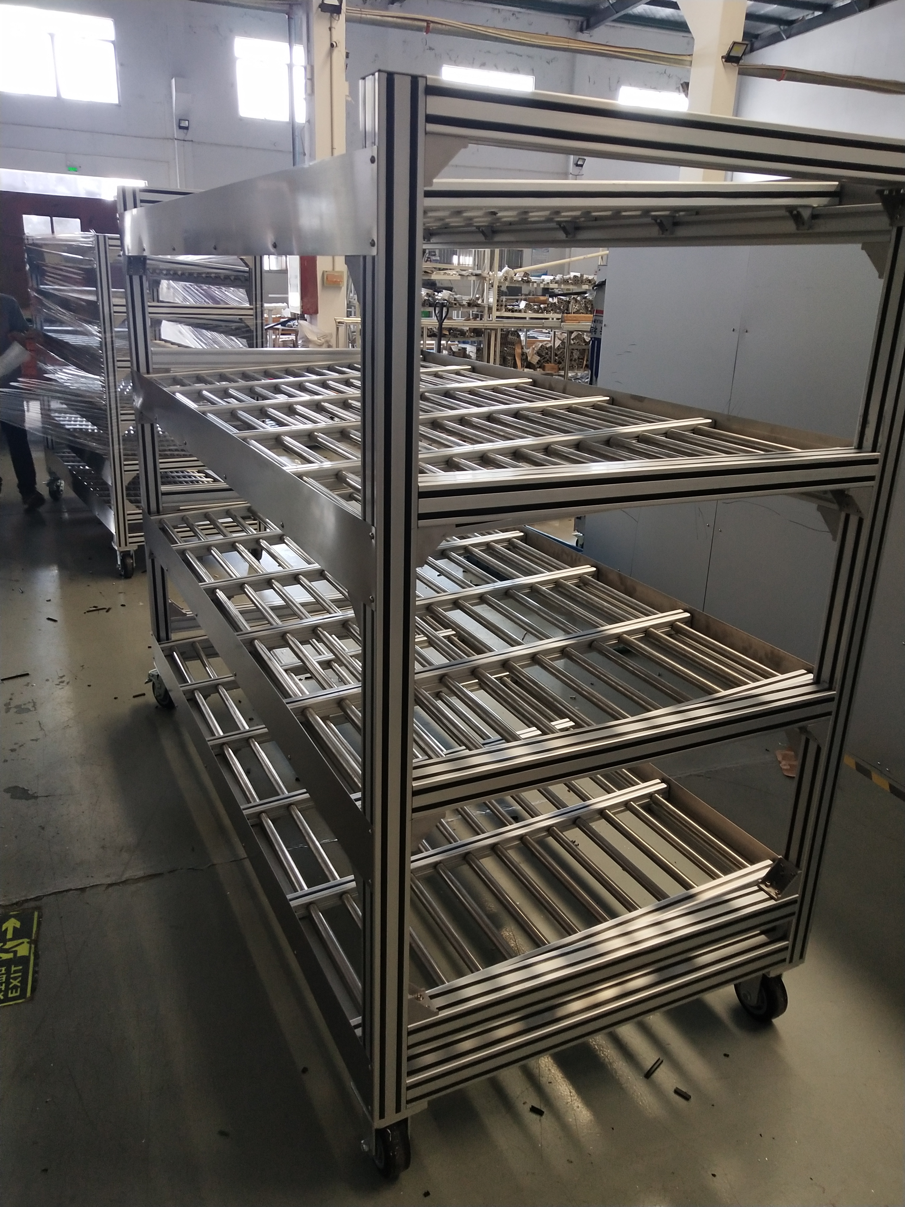 鋁型材流利條貨架通過滾道將貨物從配貨端輸送到取貨端,貨物借助重力自動下滑,可實現“先進先出”作業,使用成本低,存儲速度快、密度大。通常使用在企業的精益生產流水作業。