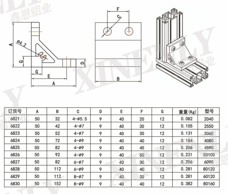 技術參數: 鋁型材配件直角角件