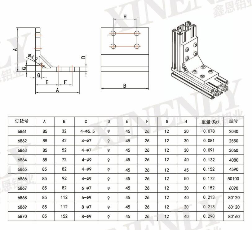 用途: 常用于型材與型材直角連接,起支撐作用,材質為擠壓鋁型材,L的長度任意性強,并在側面有紋絲位置,可用于安裝封板。