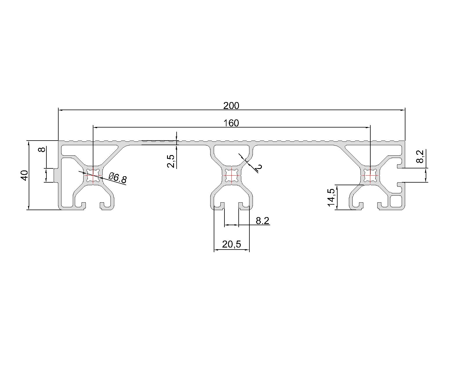 型材規(guī)格:40x200(單位:mm)
