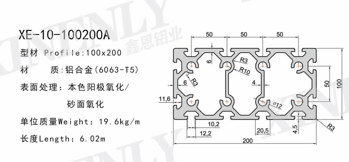 型材型號(hào):XE-10-100200系列工業(yè)鋁型材